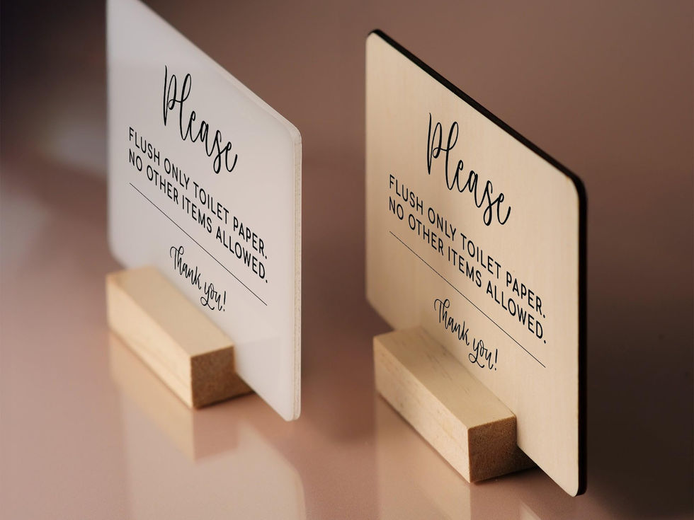 Flush Only Toilet Paper - Bathroom sign, 4 x 6 inches (On stand,