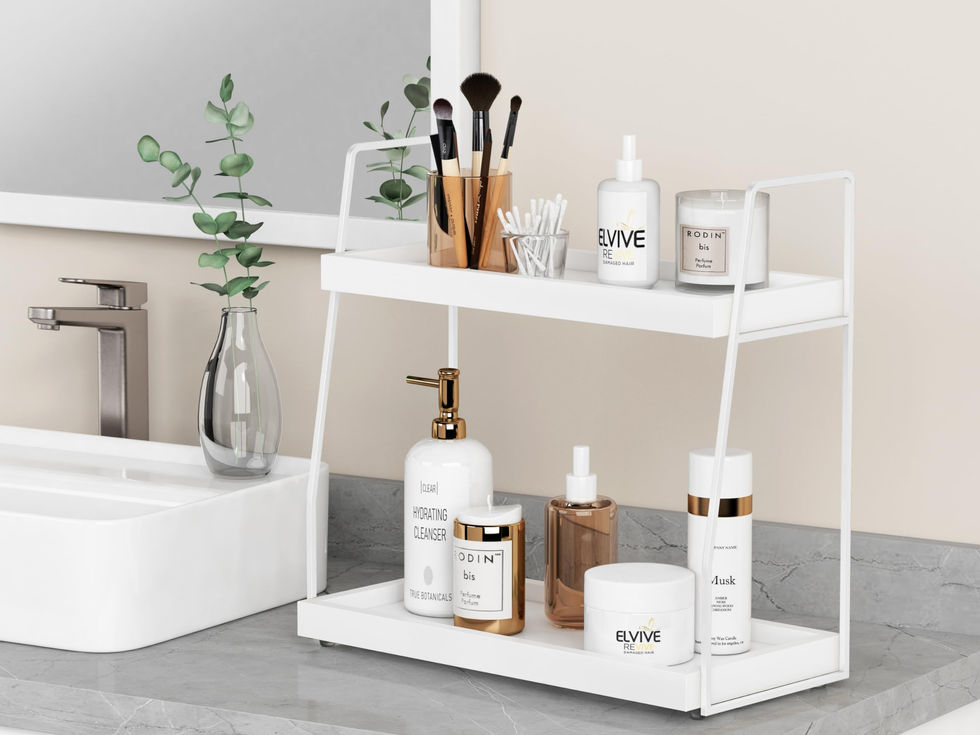 Forbena White 2 Tier Bathroom Organizer Countertop, Small Counter Top