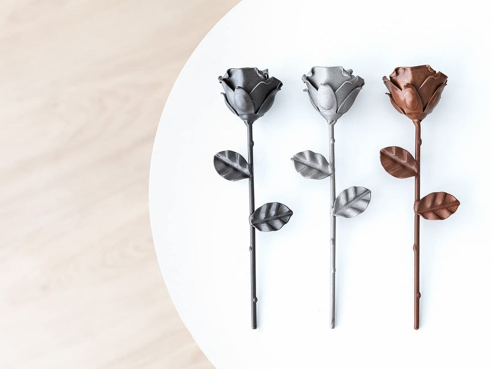 Give an original gift to the person you love. Gift for any special moment or celebration, especially for wedding anniversaries, Valentine's Day, Mother's Day. Brown forge look paint. Suitable for outdoors. Weight: 4.75 oz. Height: 7.9 in. The rose is delivered in a cardboard box properly protected with wood shavings and bubble wrap on the flower. Visit our Store and discover other models and colours.