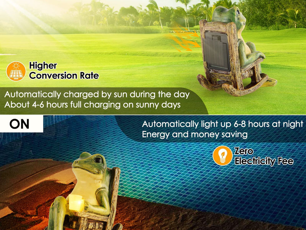 FUNNY FROG FIGURINES - This adorable frog will leap right into your heart! The frogs statue lights combine the charming elements of the animal with the beauty of light. The simple , modern design blends unobtrusively into the living room etc and provides cozy light for an individual living ambience . The lamp completes the living area as a pretty accent light. SAFE SOLAR POWERED LIGHT - Brighten up an entryway or bedroom with these charming handmade coffee loving frog statue decor that are also great conversation pieces. Simply place it at a location with direct sunlight during the day, the solar panel will charge within 4-6 hours during the day and light up automatically at night for 6-8 hours. This is good for the environment and your wallet. DURABLE OUTDOOR LAWN DECOR - This chic Lawn Frog Ornaments light will stay with you for a long time and will give you a lot of pleasure. Our mini fairy garden accessories yard decor are made of high quality resin material, waterproof,cracking and fade resistant could work well even in heavy rain or snowstorms. HIGH-QUALITY - This Solar Lights Garden Decorations is made for your home. You can use In your flat, office, classroom or in your car. It ensures that your surroundings shine in the most beautiful lights and warm your heart. So you can enjoy mild summer nights or cool autumn evenings outside and sit inside in the cold season with cosy light. REST ASSURED SHOPPING - Size of the mini frog sculpture is 3.89 x 2.36 x 3.93 inches, small and not bulky. Packaged safely in the polyfoam to prevent damage during transportation. In addition, the solar garden ornament is the perfect present for birthdays, Easter, Mother's Day, Father's Day, anniversaries, or any celebration! Especially for kids love little frog!