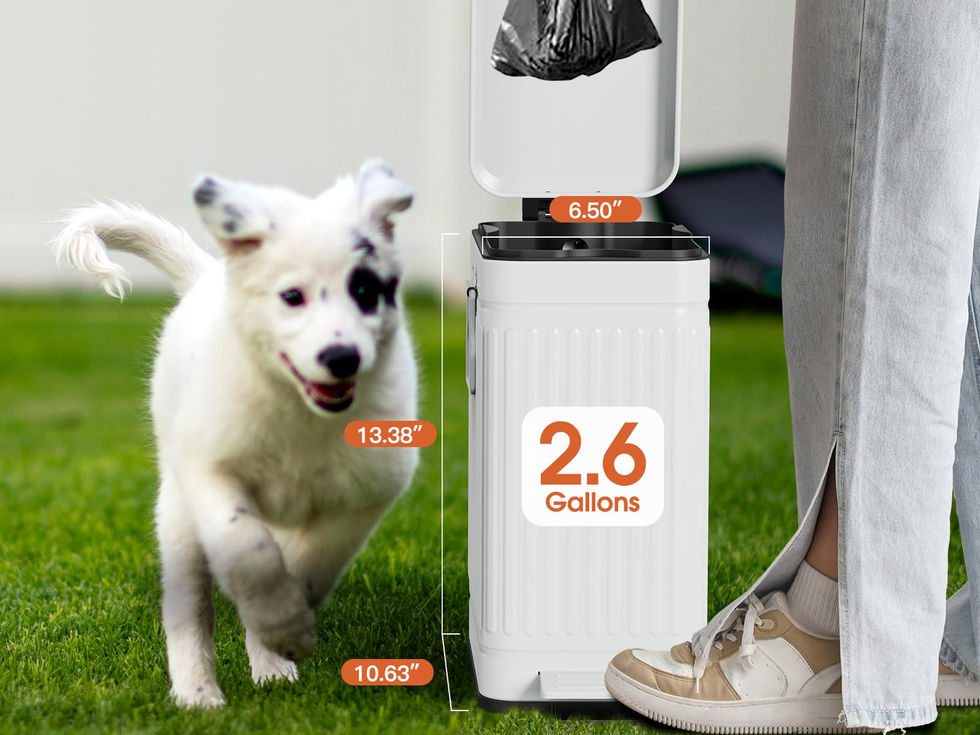 Silent Soft Close: The small trash can lid is made with a Soft Close Function, The lid has a damper arrangement that retards the close of allows the lid to close quietly by itself every time High Quality: The trash cans are made from stainless steel, rust and fingerprint-proof; The matte embossed finish results in a stylish and modern design for bathroom, bedroom, office, toilet, dorm Odor-Free: The Odor Control trash can included compartment and activated carbon deodorizer absorbs waste odors, 360° sealed space prevents odors from escaping from the can, making your space cleaner Removable Inner Bucket: Our trash cans feature a removable inner bucket that makes trash disposal easy; There is a carry handle on the back of the slim trash can to move it easier Touch-Free: The step trash can has a durable and strong foot pedal engineered to last, hands-free design(Free hands) to keep Your Hands Clean