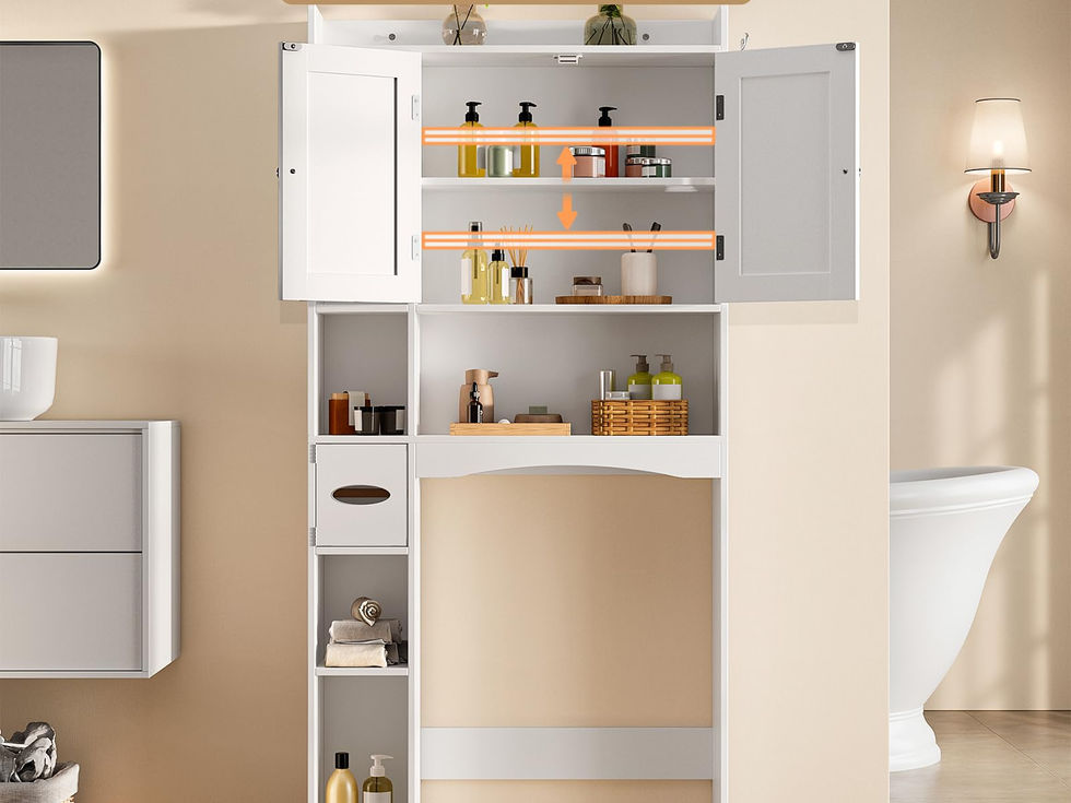 【AMPLE STORAGE SPACES】: This over the toilet storage cabinet comes with a double doors storage cabinet , adjustable storage, paper towel holder, and open shelves to easily accommodate different items. 【DOUBLE DOOR DESIGN】: Flexible double door design not only improves the storage efficiency of the storage shelf, convenient for you to access the required items at any time, but also increases the aesthetics and keeps the bathroom neat and elegant.Two metal hooks are convenient for hanging towels and other items. In addition, the bottom fixing rod can be adjusted in height according to your needs 【STRONG AND DURABLE STRUCTURE】: The over the toilet storage cabinet is made of high-quality engineered wood to enhance stability and extend service life. In addition, the anti-dumping accessories can be fixed to the wall to ensure safety and stability 【APPLICABLE TO MULTIPLE SCENES】: This bathroom storage organizer has simple lines and exquisite atmosphere. It is also suitable for display or storage in the laundry room, living room, kitchen and other places 【EASY INSTALLATION】: The packaging of this bathroom storage cabinet above the toilet comes with detailed installation instructions, and all parts and accessories are numbered for easy identification. If you have any questions or concerns, please feel free to contact us for solutions