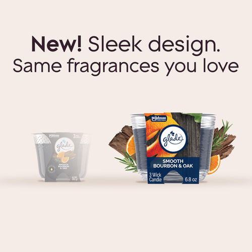 Meet your next go-to candle and awaken your senses with the room filling fragrance of the expertly crafted Glade Smooth Bourbon & Oak scented candle Discover the scent treat you've been searching for with these large scented candles – you'll definitely want to take a second smell and set a relaxing vibe Surround yourself with scent and a soft glow with the Glade Smooth Bourbon & Oak candle with notes of bourbon and oak These fragrant candles are expertly crafted by master perfumers – with fragrance infused with essential oils and made without phthalates, parabens, formaldehyde or nitro musks Whether it's Me-time relaxing with a book or a luxurious bath, discover the art of light and scent with our candle and reward your ritual