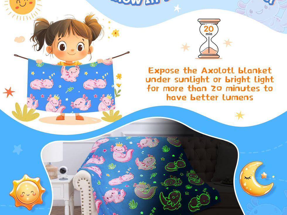Glow in The Dark Axolotl Blankets,Throw Blanket Toys Gifts for 3 4 5