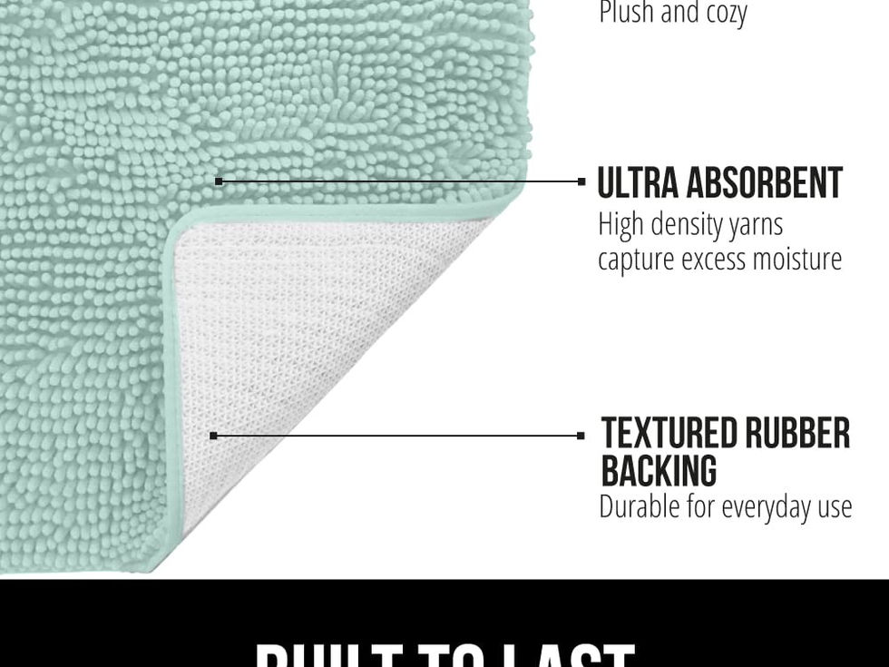 TEXTURED RUBBER BACKING: unlike other brands who use PVC or hot glue, our bath rugs are constructed with a durable TP Rubber Backing. PVC and hot glue break down as mats are washed whereas, our TP Rubber mats have been third party tested to be washed and dried over and over again for long lasting use