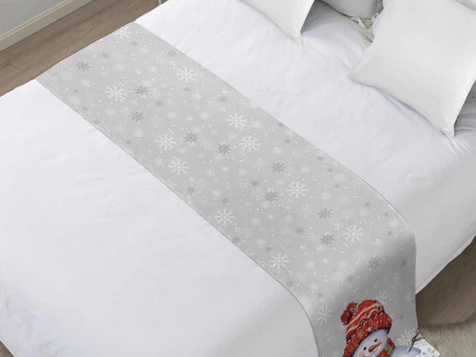 Grey Snowman Bed Runner for Full/ Queen Size Bed, Bedspread Protector