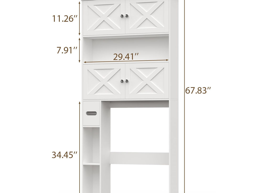 Premium Material, Sturdy Safty: Halitaa over the toilet storage cabinet is constructed of high-quality engineered wood sturdy and durable. Over the toilet shelf cabinet equipped with an anti-tip device that can anchor to the wall to ensure safety and stability. Multi-functional Partition Storage: The unique four-door design plus the middle open layer design can store a variety of items. The combination of open and hidden storage facilitates access and display, bringing more flexibility to daily storage. Practical Space Save: No need to worry about the bathroom space being too small anymore! The freestanding over the toilet storage cabinet make full use of the space over the toilet can keep your toiletries organized without taking up too much floor space. Farmhouse Style Design: Designed with a Farmhouse style for a charming look, this white bathroom storage cabinet with 4 barn doors will blend well with any room style or decor. Bring your room to life and create a cozy atmosphere! Easy Assembly: This over toilet bathroom organize comes with numbered parts and detailed illustrated assemble instructions, you can easily assemble it in 30 minutes. Halitaa provides trusted service, Please feel free to contact Halitaa service team.