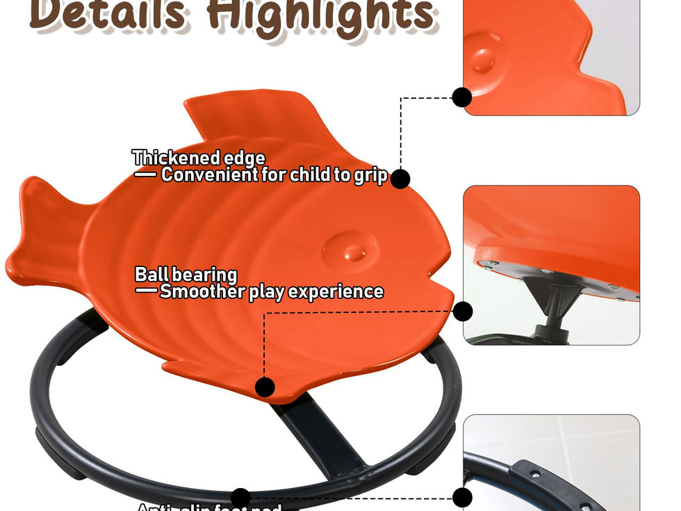 ✔【 Growing up in Fun】 This sensory chair helps to cultivate children's balance, steering, hand eye coordination, strengthen children's limbs, and enable children to exercise in play. ✔ 【Firm and Comfortable Design】 The metal base of this sensory seat added with a rubber anti-skid pad, which ensures the stability of the children's rotary chair and makes children play more confidently; The rounded and thickened edge is convenient to grasp, and children do not need to be worried about being injured when using it. ✔ 【Cute Appearance】 This sensory chair cute fish design captures many children's hearts, and there are two colors to choose from (green and blue). ✔ 【Good Experience】The ball bearing of this sensory seat, with weak resistance when rotating, can rotate freely, improve children's sense of use, and play in a variety of ways, such as sitting, playing, lying and so on. It is a very suitable toy for children to exercise their balance. ✔ 【Perfect Gift】 This sensory chair is an ideal gift for children's pre-school, birthday, Christmas and other festivals. The recommended age is 3-9 years old.