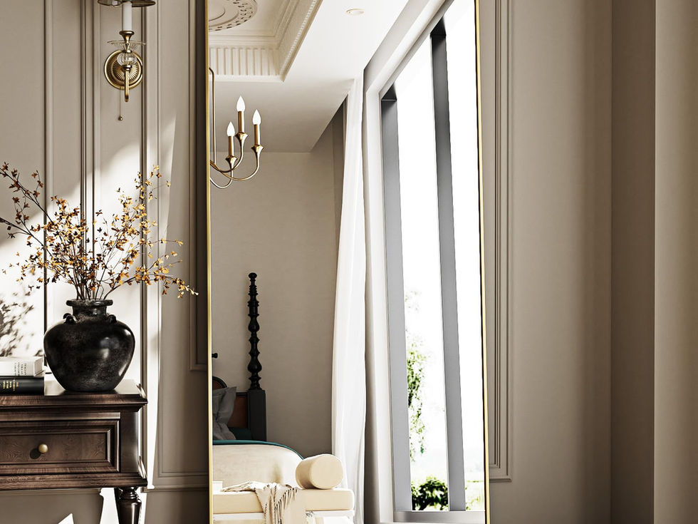 Rounded Full Length Mirror - Perfect blend of style and functionality with our stand up mirror full length. Capture your entire figure in a single glance, enhancing your light, beauty, and confidence Aluminum Alloy Frame - Elevate your decor with the elegant aluminum alloy frame of our gold full length mirror. The classic design, measuring 0.55 inches wide, adds a touch of sophistication. The rounded frame not only enhances aesthetics but also ensures safety in use Explosion-proof Glass - Enjoy a crystal-clear reflection with our high-quality explosion-proof membrane process glass. The wall mirror full length offers a super HD undistorted reflection effect while being anti-rust, moisture-proof, and oxidation-resistant. Rest assured, even if accidentally damaged, the mirror's pieces won't scatter in all directions Easy Installation & Wide Use - Versatile and user-friendly, our floor mirror can be leaned against the wall or placed free-standing. It hangs both vertically and horizontally, providing flexibility for various spaces. Ideal for the bathroom, bedroom, living room, dining room, cloakroom, home gym, entry hallway, or wardrobe—our mirror adds a touch of sophistication wherever it stands Size & Color - size: 23x66 inch, color: Black or Gold