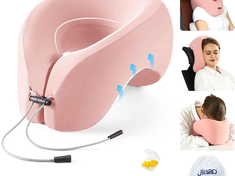 【2 in 1 Pillow】As a neck pillow, this travel pillow can better fix your neck and shoulders, prevents head from falling forward, relieves neck pain during travel. As face down pillow, the airplane neck pillow is designed with a perfect 45° angle, allowing your head and neck to naturally lean forward, minimizes arm pressure, the hands are numb, and the slumber is soothing. 【Free Adjustment Buckle】The neck pillow travel have an adjustable rope lock, which can adjust the tightness of the plane pillow randomly, meeting different neck size requirements. The adjustable buckle has a snap button, which can be tied on your carry-on luggage without occupying extra space. More importantly, the neck support travel pillow is equipped with a waterproof storage bag, which is also convenient for collecting pillows, which is very convenient when you travel. 【New Design Premium Memory Foam】The travel neck pillows for adults is made of comfortable and breathable high quality memory foam, slow rebound helps absorb pressure and shape into the position that is most desirable for you. It provides full support for your head and neck and relieves the fatigue caused by long-distance traveling. 【Removeable & Washable Pillowcase】Jiaao airplane pillow neck support have a double-layer high-quality pillowcase. The outer pillowcase is made of upgraded soft & breathable elastic sweat-resistant fabric, which can be removed, machine washable and has a zipper. The breathable inner cover extends the life of the memory foam core effectively. 【Great Gift Idea】Everyone needs a high quality neck travel pillow, when you are sitting in the seat on a plane, car, train or bus. Equipped with eye mask and earplugs, make sleep more comfortable. You can buy for your relatives, friends, colleagues, parents. This plane neck pillow is also a good gift for Christmas, Thanksgiving, Valentine's Day, Father's Day and Mother's Day.