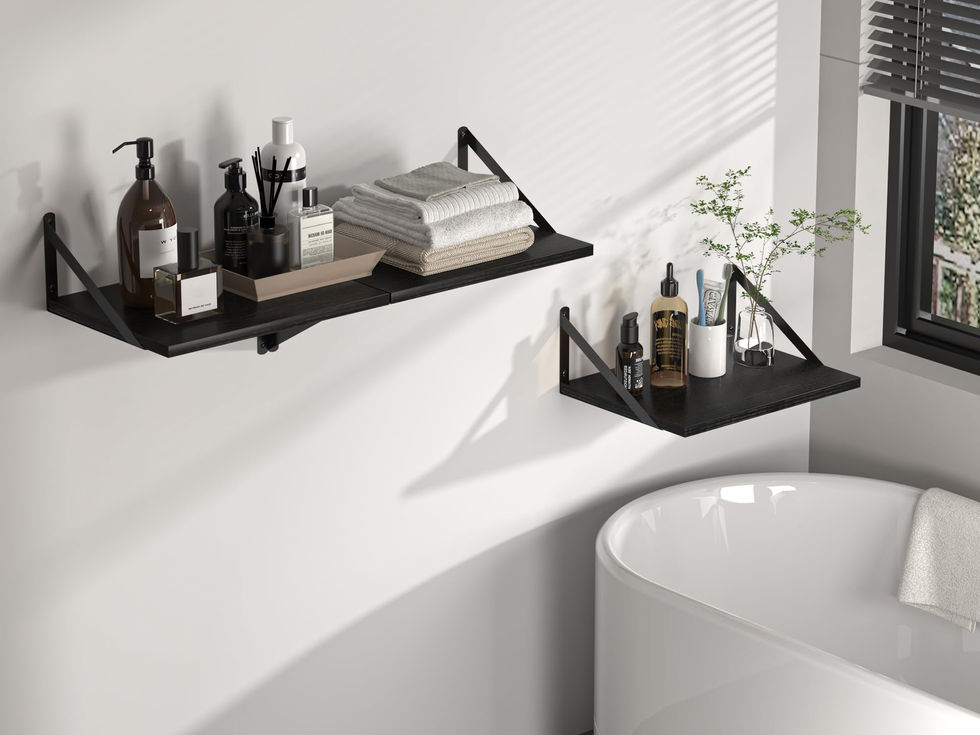 [Discover More Organization Space] - Don't worry about cluttered desktops and floors! Why not try using the walls? The wonderful combination of smooth-surfaced metal brackets and engineered wood board texture decorates your home with a natural and rustic beauty! Great for organizing books, collectibles, plants, and trophies on the wall without occupying floor space. [Easy Installation] - Easy to install in minutes with the installation manual. In addition, when you mount our wall shelves firmly on the wall, they can hold up to 40 lbs of weight. [Size Does Matter] - These wall shelves are wider and longer than regular shelves on the market, providing more room and worry-free storage! Measures: 16Wx12Dx5.8H Easy to install within a few minutes with all necessary hardware included. [Large Capacity Floating Shelves] - Our wall shelves are 16" long x 12" deep, providing ample storage or display space for your kitchen, living room, bedroom, bathroom, laundry room, and more. With such a large space, you can place many items like books, collectibles, plants, crafts, photos, laundry detergent, etc. Our shelf can even be used as a bookshelf or a nightstand. Let our shelves decorate every corner of your home! [2 Assembling Styles] - The uniquely designed smooth surface metal triangular bracket can be installed on the top or bottom of the shelf. Depending on your preference, you can assemble it up or down to create your unique home style.