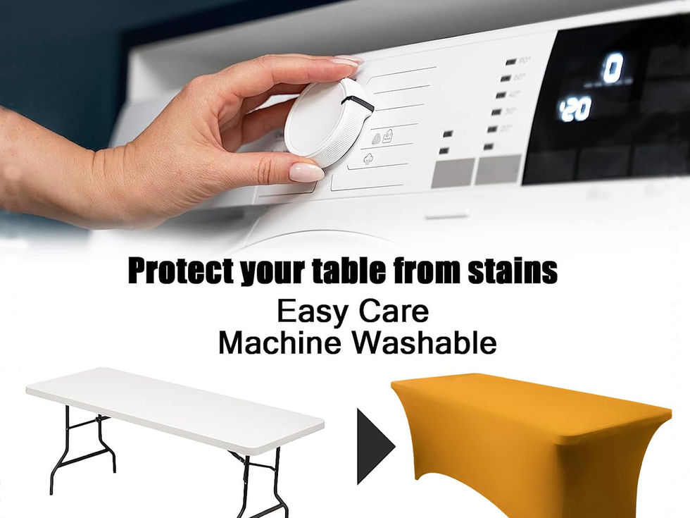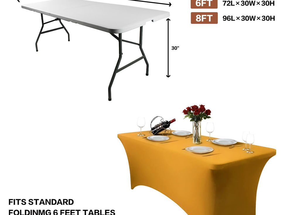 LASTING AND STRETCHABLE - This rectangular table covers are stretchable, durable, wrinkle-free and stain resistant due to it was made from 90% Polyester material and 10% Spandex fabric.6FT: Fits a 72" Length x 30" Width x 30" Height table EXCELLENT DESIGN AND STABLE FIT - stretch spandex material and pockets for legs are designed for keeping the tablecloth securely in place to fit your table better and make a flat & professional look so that your table cover won't slip around or billow with wind Multiple Colors For More Occasions - In order to meet your needs for different scene decoration, we offer multiple colors for you to choose. These table covers are stain resistant, wrinkle resistant and fit for any events Versatile for Multiple Occasions - The table cloth must be your best choice as dinner, birthday, anniversary, festival, wedding, vendors, dessert ,buffet, banquet, trade show, hotel receptions, Halloween decorations, Christmas, jewelry shows craft display Laundry Guide - Hand wash or Machine wash. Machine wash with water (cold or room temperature) in gentle cycle. Bleach is not recommended. Don`t wash with other materials. Wash like colors together. Dry at low temperature