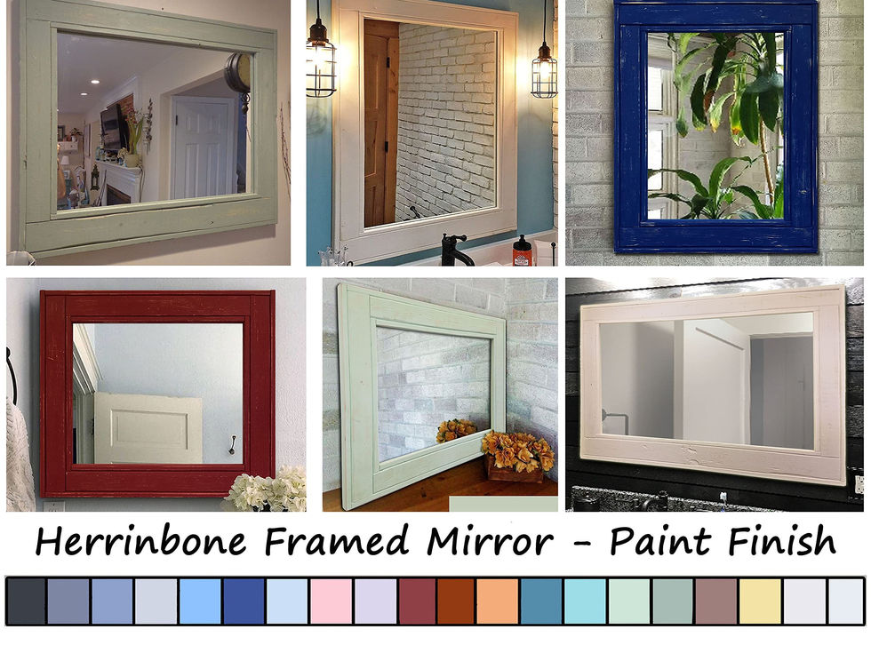 Our Herringbone Mirror is custom made to order, Handmade in Warrington, PA USA. This is NOT a mass-produced product. Made from USA sourced rustic reclaimed styled eastern white pine and premium quality 1/4 inch glass mirror. Available in 20 Paint Colors & 4 Paint Distress Levels (Shown in Sundried Tomato Red, Distressed Finish). Not sure on color we do samples, message us for details. Available in 5 sizes 22" x 24", 24” x 30”, 30" x 36”, 42" x 30" or 30” x 60”. Mirror sizes are listed according to exterior dimensions. Mirrors can be mounted in a horizontal or vertical hanging orientation. LOOKING FOR A DIFFERENT SIZE? We are always open to custom projects, please contact us for a quote. Choose either heavy duty saw tooth hangers or Z-bar Hanging System, Z-Bar hanging system is highly recommended for the 60" x 30" size Over the years we have developed specialized package material including custom made corners, premium quality burst resistant bubble padding and customized boxes to help us ship all over the world. We are proud to have well less than .05% shipping damage. If that rare event does occur and your mirror is damaged, we will replace or fully refund your purchase.