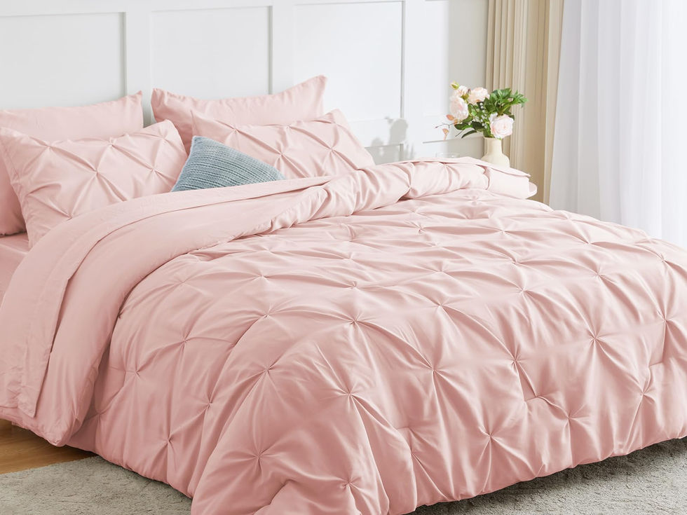 HIMEET- Pink Comforter Set Queen (88"x88") 7 Pieces Blush Pink