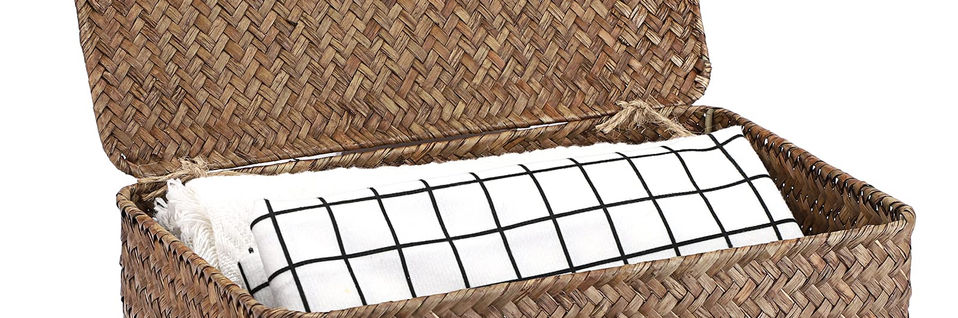 Natural seagrass- Made of seagrass which is sturdy,can be used for a long time,Each basket is woven by hand,seagrass has natural color variations which makes every basket unique.They're as much a practical tool as they are a piece of art Multipurpose Baskets - Great for cosmetics, books , coins ,album, fruit, underwear, clothes, towels, toiletries, fruits, snacks, magazines,newspapers, photos or other memorabilia;Utility and suitable for office,home,nursery. fits in your office table, bedroom, living room , closet, nightstand,shelves, or anywhere in the house Keep your Place Tidy and Neat - Use these baskets to keep your small items organized to reduce clutter,everything is easy to find.The lid help to hide all clutter inside,the make your messy place look nice and tidy Fantastic Gift Idea - You can gift the baskets as a standalone item, or even fill it up with other small gift ideas to make an ideal housewarming or birthday present! Everyone will appreciate the practicality and usefulness of this handwoven seagrass basket Product Info -Size (L*W*H) :10.2" x 6.3" x 4.1",Package Included: 1x Handwoven Basket Box (Accessories are not included)