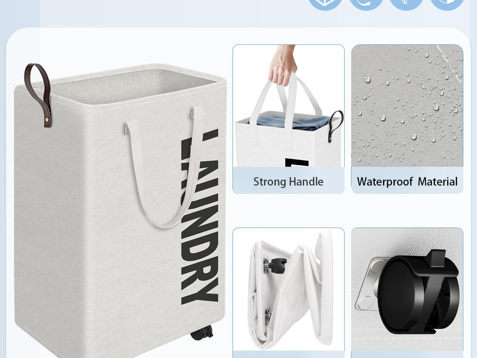 Extra-Large Size & Ample Storage: HomeHacks wheeled laundry basket measures 11.81''L x 15.75''W x 24.81''H with a 75L capacity. The large design provides ample storage space, easily accommodating a variety of clothing, including T-shirts, pants, underwear, blankets, and quilts. Perfect for large families or shared living environments Lightweight & Sturdy Construction: Made from high-quality cotton and flax fabric with a waterproof coating, our laundry hamper is both lightweight and sturdy. The sturdy metal frame at the top ensures the basket remains upright even when empty, making it easy to load and unload clothes Easy to Move: Equipped with premium, smooth-rolling wheels and a sturdy handle, moving clothes from your bedroom to the bathroom or laundry room is a breeze. A brake on one of the wheels ensures the laundry cart remain in place, even on an incline. If you want to stop it, simply press the brake Collapsible & Space-Saving Design: When not in use, the laundry basket can be easily folded into a compact size for convenient storage in a drawer, closet, or under a bed. This collapsible design makes it ideal for small apartments, homes, hotels, dorms, offices and camping Easy to Clean & Care Instructions: The interior of the laundry basket is coated with a waterproof material, making it easy to clean. Simply wipe it down with a damp cloth to remove any stains. For a long service life, do not place the laundry basket in a dryer or washing machine