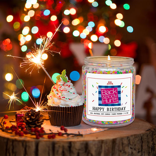 Birthday Gifts: Candles emit the fragrance of vanilla and cake and are mixed with candy particles. It says," Back & Body Hurts, Happy Birthday", The best gift is never something, but expected warmth and unexpected surprises Birthday Gifts for Women: This candle makes the perfect birthday gift for women and men birthdays! Including best friends, gifts for 20th, 30th, 40th, 50th, 60th, and 65th birthdays. They're an experience that you won't forget Happy Birthday Candles: Can be used in the living room, bedroom, bathroom, home office or anywhere in the home. They are perfect as a birthday gift for female or male friends, family, lovers and yourself Vanilla Birthday Cake Scent Candle: For the perfect candles that make great gifts for women and men, Candles boast a beautiful design. With wicks, they provide a long-lasting burn, making them a must-have addition to any home Happy Birthday: Candles the convenient glass jar with a lid makes it easy to take them on the go. Make your loved ones' birthdays extra special with Homsolver's happy birthday dear friend candle - a perfect way to show your affection and appreciation