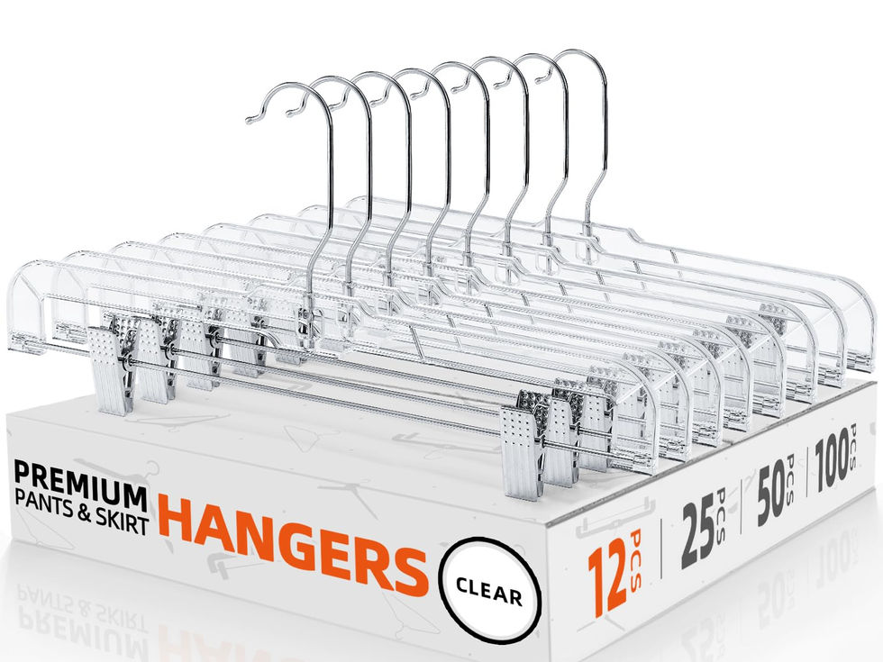 HOUSE DAY 12 Pack 14 inch Clear Plastic Skirt Hangers with Adjustable