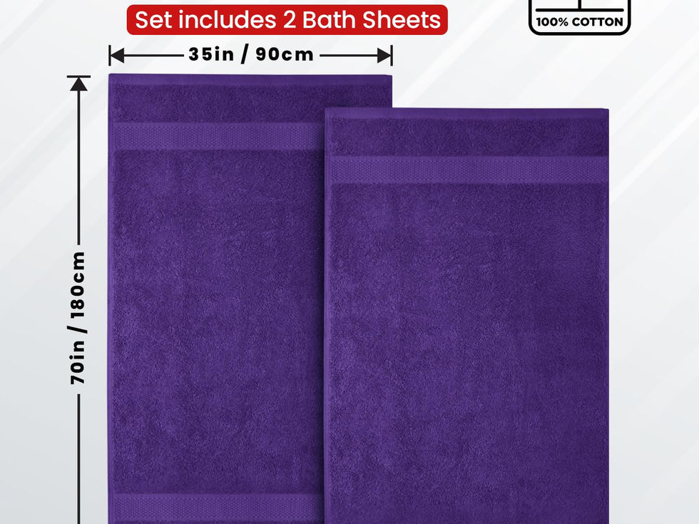 EXTRA-LARGE SIZE: These 2 luxury cotton bath sheets measure 35 x 70 inches, providing generous coverage and comfort. Ideal for any body size, they are perfect for wrapping yourself up after a relaxing bath or shower. PREMIUM QUALITY: Our bath towels are made from 100% ring spun cotton, these towels are incredibly soft and plush. They offer a luxurious feel against your skin, making every bath or shower a spa-like experience. ABSORBENT AND SOFT: Our bathroom towels feel soft and delicate on the skin while the composition enables them to be highly absorbent and durable. DURABLE AND LONG-LASTING: These bath sheets are designed to withstand frequent washing and drying without losing their softness or absorbency. They retain their vibrant color and texture even after several washes. VIBRANT COLORS: Available in a wide range of colors that are fade-resistant, these large bath towel maintain their vibrant hues even after multiple washes. They are also praised for their quality, with many users comparing them to hotel-grade towels.
