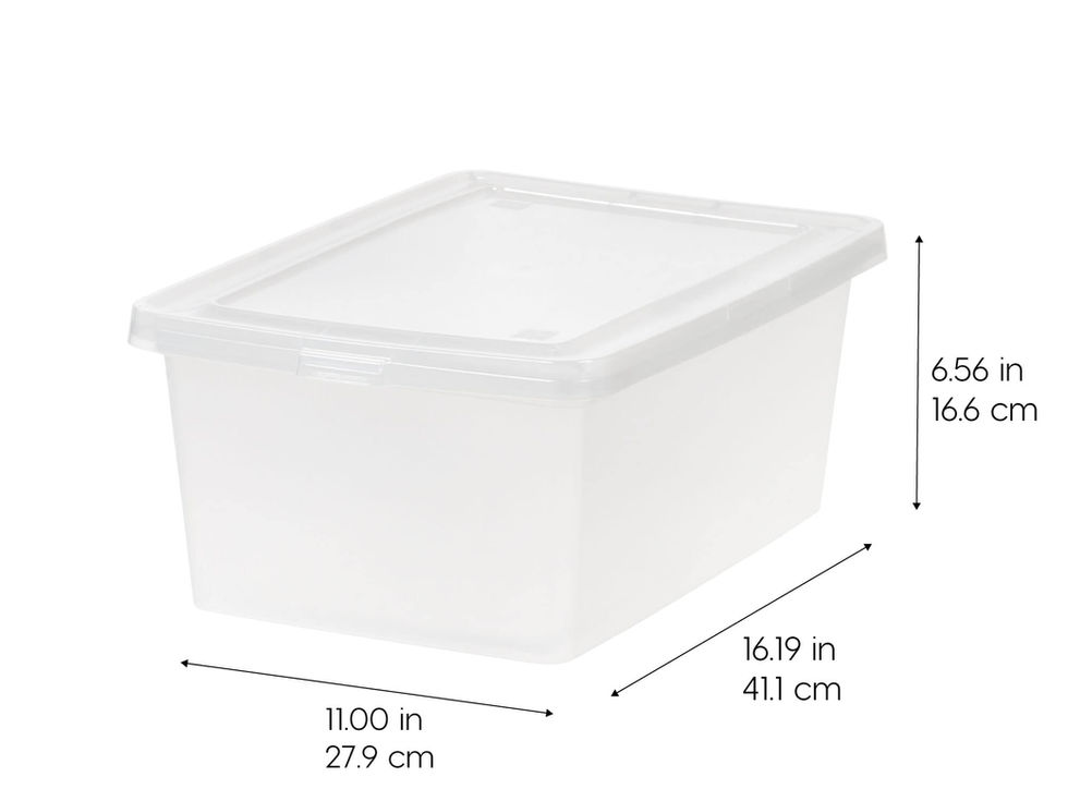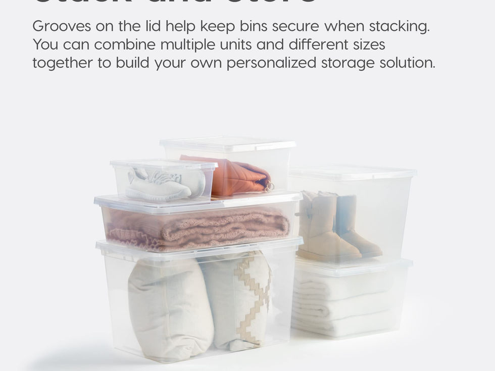 MADE IN USA: Our storage bins are proudly crafted in the USA using high-quality, durable materials, ensuring your belongings stay safe and secure. BUILT TO LAST: Crafted for enduring use, these plastic containers with snap-on lids ensure a secure closure, effortlessly withstanding daily wear and tear. SEE-THROUGH DESIGN: You can easily see what's inside the box without opening it, thanks to its transparent design. STACKABLE STORAGE: Maximize space in your home, office, or playroom. The lid keeps items safe and allows bins to be stacked on top of each other. BPA-FREE AND ACID-FREE: The material used is safe for storing items, as it's free from harmful chemicals like BPA, acids and phthalates.