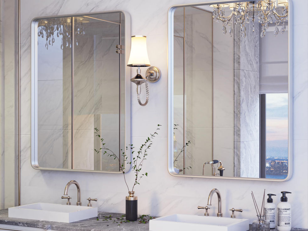 ISKM Brushed Silver Mirror for Bathroom, 24 x 36 Inch Wall Mounted