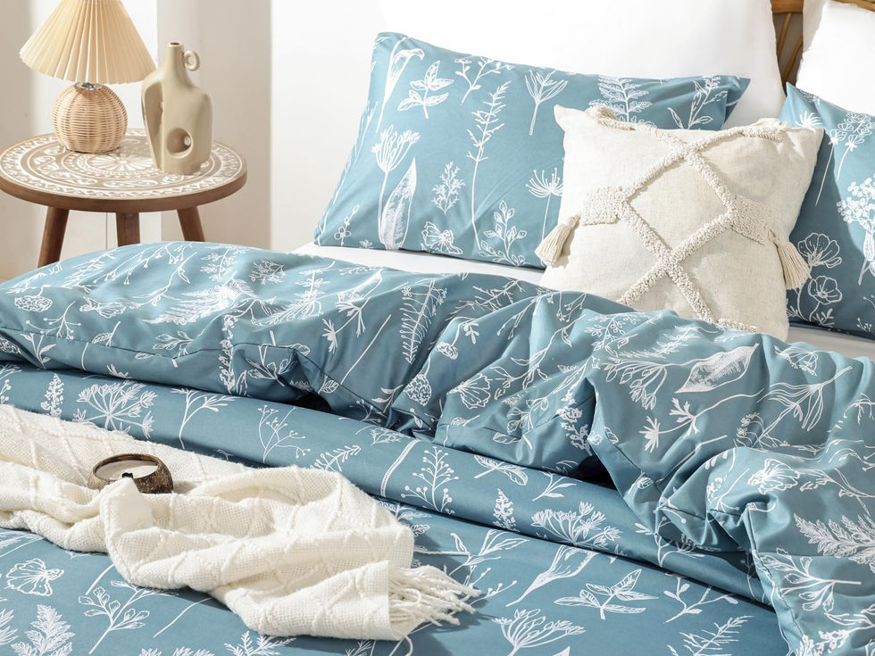 JANZAA Queen Comforter Set Mineral Blue Comforter Floral Bedding Sets