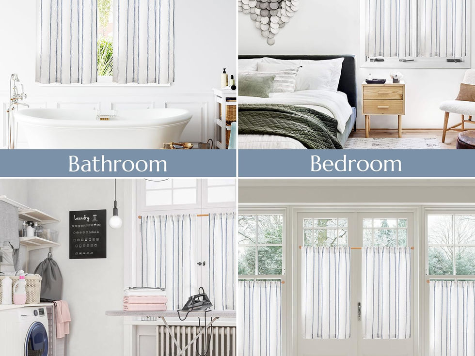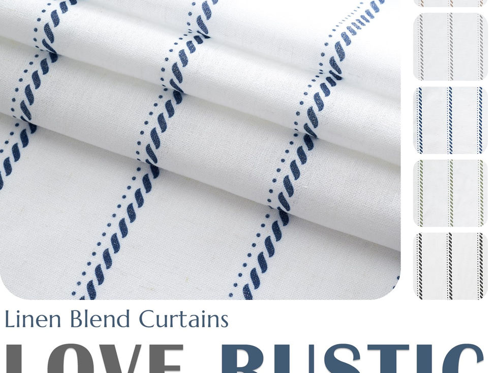 Ready Made: Package includes two panels of linen kitchen curtains, each panel measuring 26"W x 36"L. Each panel has 3 inch high pole pocket, which works well with tension rods or normal rods, easy to install and slide. It is recommended to use a rod with a diameter of 1.8 inch or less. Striped Print Cafe Curtains: These half window curtains feature a refreshing vertical stripes design on linen blend fabric, bringing a rustic touch to your window. These cute country curtains can go really well with farmhouse decor. Light Filtering: The semi-sheer cafe curtains have just the right thickness to let in some light and also provide privacy. They can gently filter sunlight while providing bohemian feel to the room. You can cover the lower portion of your windows to provide privacy or used alone on shorter length windows. Wide Application: These curtains are not only suit for the kitchen window, but are also the addition to your glass door, bathroom or living room windows, laundry room, study, basement, closet, cabinet, RV or camper. These small kitchen curtains can be paired with bohemian, farmhouse, rustic or modern style home decor as you like. Easy Care: The durability of these half window curtains are due to the sturdy linen-poly fabric and top-notch sewing quality. Our short tier curtain sets are machine washable in cold water in the gentle cycle and tumble dry in a low setting. Do not bleach. Creases on the linen curtains from packing and shipping can be pressed out with low temperature ironing.