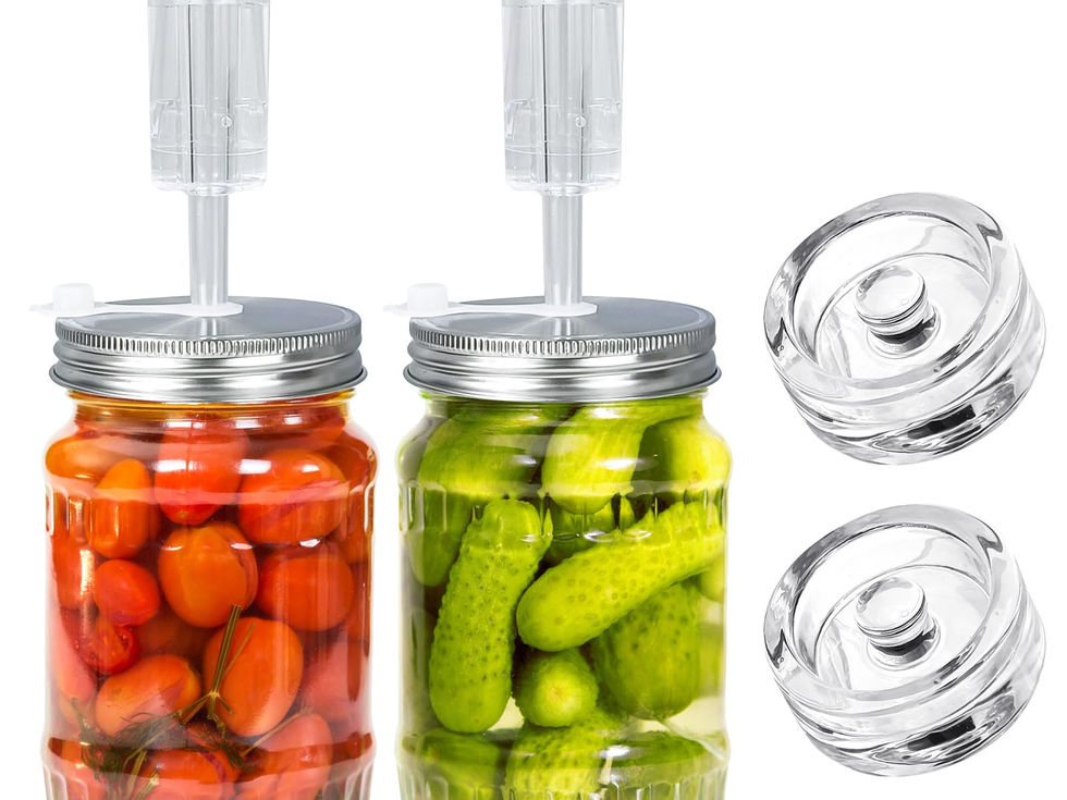 Fermenting Kit: This Fermenting Kit includes 2 Fermentation Lids and 2 Fermentation Weights, they are fit 3.38inch (86mm) outer diameter mouth wide jars, which is a good partner for your kitchen Upgraded lid: The lid is different from ordinary one-piece fermentation lid, it has a silicone ring for better airtightness and better compatibility with 86mm wide-mouth fermentation lid Silicone Plug Design: The Fermenting Lid with Venting Valve prevents oxygen from entering the Fermenting Jar while allowing other gases to escape. When fermentation is complete, there is no need to replace the lid, simply remove the airlock and seal the hole with a silicone plug Reusable: Suitable for hand wash or top rack dishwasher. Our weights are thick and heavy, great quality and can be used for many years Ideal Kitchen Gift: This fermentation set includes key fermentation equipment that allows you to provide healthy food for your family in your life, a ideal kitchen gift