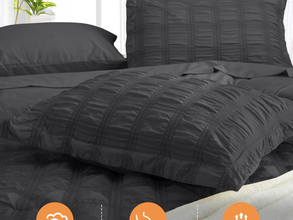 JOLLYVOGUE Queen Comforter Set Seersucker 7 Pieces, Dark Grey