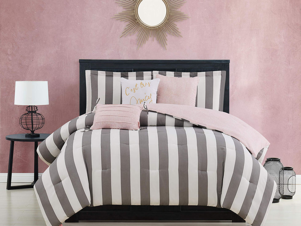 Juicy Couture โ Comforter Set, Cabana Stripe Design, Twin Bedding, 5