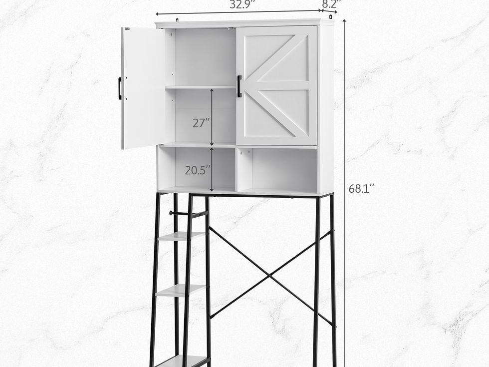 Space Saver: This over the toilet cabinet offers spacious storage space to easily organize towels, paper towels and other daily necessities. The simple design adds an elegant ambiance to the bathroom and brings a pleasant experience every time you use it. Farmhouse Style: Distinctive barn door style cabinet door, equipped with built-in three-sectional adjustable shelf, you can freely adjust the height according to your needs, easy to store different items, so that the bathroom items storage more convenient. Safety Master: Thoughtfully designed anti-tipping device provides a safer experience for your family, preventing the storage cabinet from tipping over and suitable for daily use, adding peace of mind and security. High-Quality Material: This bathroom organizer is made of MDF, which has excellent durability and moisture resistance and can withstand the wear and tear of daily use. The smooth surface is not only aesthetically pleasing, but also easy to clean and maintain, removing stains with ease and keeping your bathroom looking as clean as new. Easy Assembly: The assembly process of this toilet organizer is very simple and each part is clearly numbered. Detailed illustrated instructions are included in the package, for installation please read the included assembly guide carefully.
