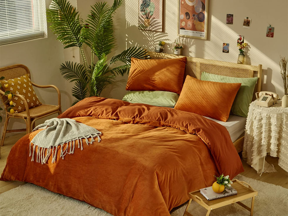 KAREVER Burnt Orange Color Velvet Comforter Set Full Solid Rust Color