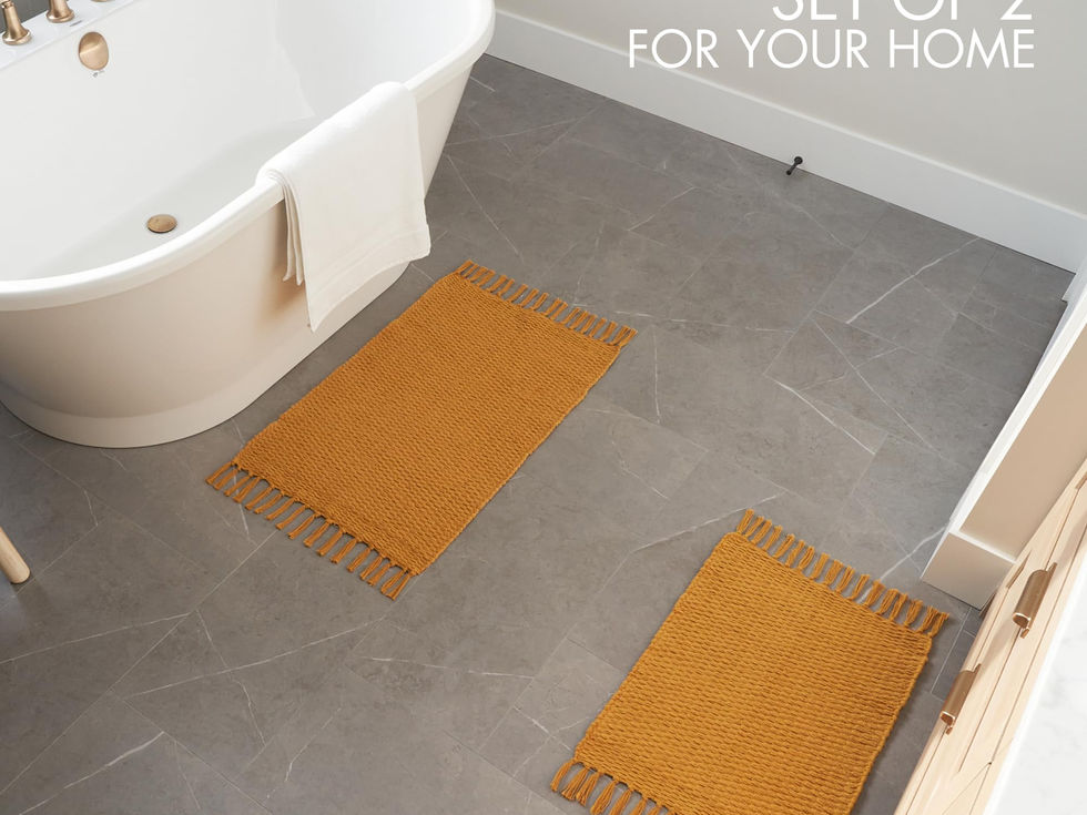 Transform Your Bathroom In Seconds: KIBAGAs’ boho bathroom rugs seamlessly bring style and anti-slip safety to your space! Soft, comfy and full of boho charm, they’re perfect for turning your bathroom into a cozy, inviting oasis of well-being Stylish Pair, Perfect Anywhere: The bath mat set of 2 features two different sizes - 38x20" & 30x17" with tassels, effortlessly tying your bathroom together. One by the sink, one by the shower or anywhere else - for a coordinated look that adds flair & function Modern Elegance All The Way: Beautifully designed, the timeless beige bath mat set complements any decor style. Its neutral hue ensures a sophisticated touch that lasts through every season. Chic bathroom rugs with a boho twist as a tasteful statement Softness You’ll Love: Made from 100% cotton, the boho bathroom rug set wraps your feet in cozy comfort. Step onto these rugs for a warm, soft touch that turns every step into a treat. Your toes will definitely thank you! Anti-Slip & Washable? You Bet! With anti-slip backing and a washable design, the shower rugs for your bathroom keep you safe and your bathroom fresh. Toss them in the wash whenever you need, and enjoy a space that’s both functional and fab