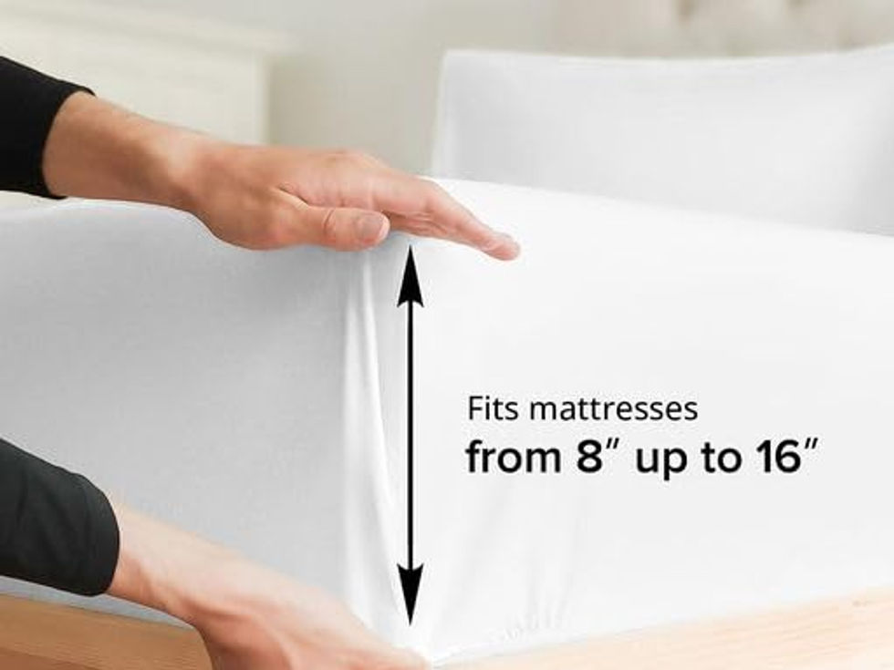 KING FITTED SHEET: This single fitted sheet is perfectly sized for most mattresses. It fits any mattresses with pockets that are 12 Inches Deep to 14 Inches Deep. Designed with a stretchable elastic all the way around, you can rest assured that this fitted sheet will stay on tight & stay in place! 400 THREAD COUNT COTTON: This 400 Thread Count Fitted Sheet is woven with the finest long staple cotton yarns. The high-quality sateen weave provides the true cotton feel that people have enjoyed for years. NATURAL 100% COTTON SHEETS: Our sheets are made in India with 100% Natural Cotton to ensure the best quality for our customers. The natural long-staple cotton yarns are what give these sheets their extra soft and durable qualities. Because they have no synthetic fibers they will get softer with each wash, stay fresh, and provide you with a luxurious and healthy sleep environment for years to come! KEEP COOL WITH BREATHABLE COTTON: These Sateen Weave Cotton Sheets have a silky smooth feel, and a comfortable weight that hugs your body. Cool, comfortable and very soft, all while maintaining a bit of crispness, these CGK Linens are well loved by our customers. If you’re a hot sleeper and need cooling bed sheets, then our moisture wicking, all natural cotton sheets will be great for you! PEACE OF MIND: Our team’s first priority is keeping you happy with your purchase! We are passionate about what we do and proud of the products we offer. If you have any questions or concerns, please don’t hesitate to contact us. We will be quick to respond!