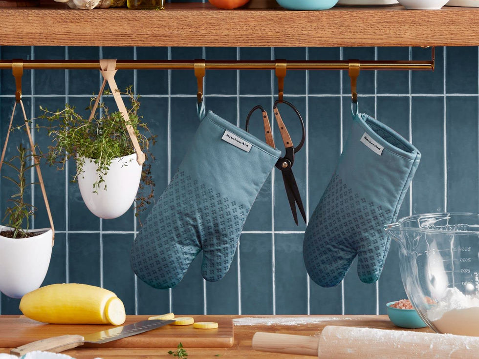 HEAT RESISTANT COTTON – Made of 100 percent durable, heat-resistant cotton, these oven mitts will help shield your hands from heat up-to 302 degrees Fahrenheit. SILICONE PRINT GRIPS - Textured, heart-shaped silicone grips ensure a more secure hold when handling hot cookware. SET OF TWO – Protect both hands while handling hot pots and pans. Set includes two (2) oven mitts, 7" W x 12. 5" L. LABEL UPDATE - KITCHENAID has a new, refreshing look! Our premium kitchen textiles are now labeled with the new KITCHENAID logo. These top-quality kitchen essentials are backed by the KITCHENAID brand for people who love to cook and create in the kitchen EASY CARE - Machine washable for easy care.