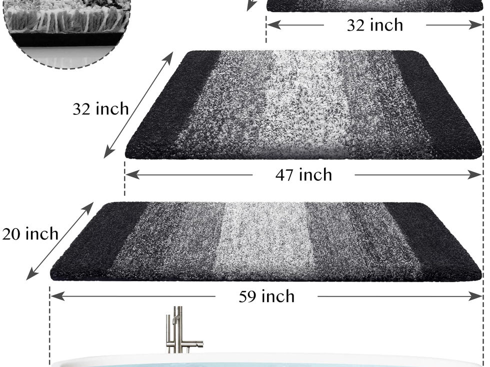 ULTRA HEAVY-DENSITY MICROFIBER: luxury shaggy bathroom shower rug is made of premium thick, soft, and absorbent microfiber; the mat provides a soft and comfortable barrier against cold and hard floors NON SKID TP RUBBER BACKING: the TP rubber backing is skid resistant and non-toxic, and tightly grips all floor types including tile and wood MACHINE WASHABLE AND NON-SHEDDING: the mat is made with Fiber Locking Technology so that every fiber is firmly attached onto the backing to prevent shedding during washing; simply wash the bath rug in the washing machine gentle cycle and allow to air dry WATER ABSORBENT AND DIRT/DUST RESISTANT: our fluffy bathroom and shower mat absorbs water quickly and efficiently; the mat may also be used as a door mat to absorb dirt and water from shoes WIDE VARIETY OF USES: 47 x 32 inches KMAT shaggy microfiber mats may be used in the bedroom, bathroom, living room, mud room, foyer, hotel, feet-spa club, and by the sink; the attractive color and design matches any décor