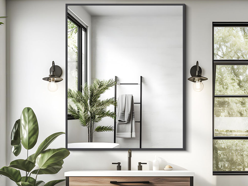 Easy Installation:KOCUUY rectangular mirror can be installed horizontally or vertically. Please use the side frames for fixation to avoid excessive pressure on the top frame, ensuring even stress distribution and extending the mirror's lifespan. Follow this guide for best results Modern Design:KOCUUY 40x48 black vanity mirror is with innovative design which gives the wall mirror a more fashion feel. With a classic square corner, the wall mounted mirror allows for creativity and functionality in bathroom, bedroom, entryway and anywhere else. Let your living space be an expression of your personal style, not limited to modern or contemporary, farmhouse or industrial Exceptional Quality:KOCUUY black wall mirror is made of HD 3mm premium glass, shatterproof, bright and anti-distortion, which provides perfect reflection. Durable Aluminum alloy frame would strengthen the floating glass for safety, waterproof and anti-corrosion in wet bathroom environments Easy Installation & Secure Package:The package for this bathroom mirror is well and securely designed with all-around protective styrofoam with passed drop test. no worry about the breakage. The metal framed mirror designed with 4 built-in slots on the back for hanging horizontally or vertically. Super easy to install. Installation guideand screws bag are included in the package Wide Application:An ideal contemporary mirror for wall decoration with metal frame, very classic, perfectly goes with any decor, suitable for using in bathroom, dressing room vanity, hallway, bedroom, living room, entryway, fireplace. A great decorative wall mirror choice