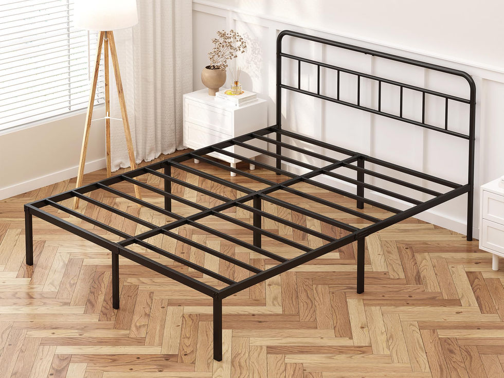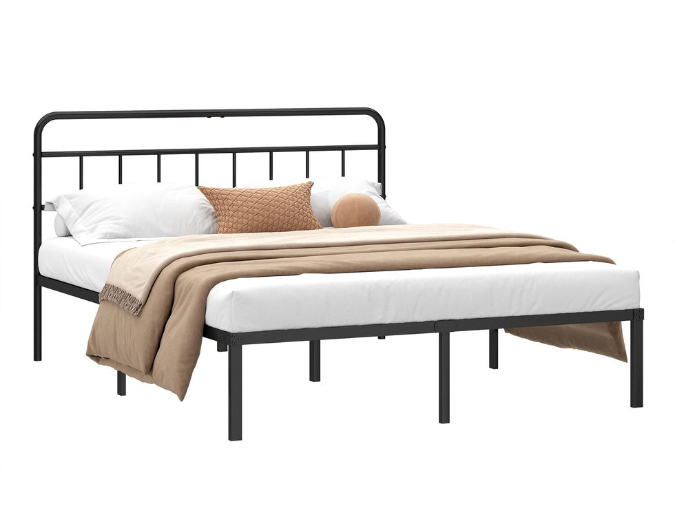 Elegant and Minimalist Design:The bed frame features a sleek, modern aesthetic that effortlessly complements a variety of bedroom styles. Its clean lines and understated elegance make it suitable for minimalist, contemporary, or even classic interiors. Stable and Durable Structure:Engineered with high-quality materials, the metal bed is built for exceptional durability and strength. Reinforced steel construction ensures a sturdy foundation that can support heavy weights. The enhanced structure also provides excellent stability, giving you peace of mind whether you’re sleeping, sitting, or moving on the bed. No Box Spring Needed:Designed with a supportive slatted base, the queen bed frame eliminates the need for a box spring. The slats are spaced optimally to prevent mattress sagging while providing proper ventilation, which can extend the lifespan of your mattress and offer better sleep comfort. Ample Under-Bed Storage:With generous clearance space beneath the frame, this bed frames offers practical storage solutions for your bedroom. This feature helps you make the most of your room’s space. Easy and Quick Assembly:The queen size bed frame is designed with user-friendliness in mind, featuring simple instructions and pre-labeled parts. It requires minimal tools and time for assembly, allowing you to set it up effortlessly. Clear step-by-step guidance ensures that you can enjoy your new bed frame without any hassle.