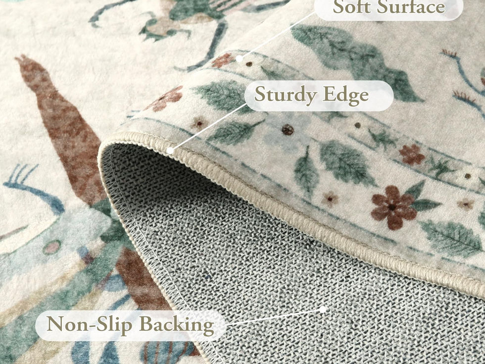Super Soft Area Rug: This runner rug is made of super soft artificial wool fibers, which is soft and comfortable- when your kids or pets play with bare feet, it is as soft as a cotton ball, keeping the soles of your feet warm and relaxed Machine washable Rug: Our easy-to-clean washable runner rug is the best choice for families. Stain Resistant and non-shedding, pet urine and baby saliva can be wiped away with a rag. Big stains can be thrown in the washing machine to clean Kids and Pets Friendly: This Modern insect rug runner has 0.19" low pile height so food crumbs, fur, hair, dirt and vomit don't get trapped inside. These rugs are perfect for high traffic area. No more worries about children and pets causing unforeseen messes Beautiful Insect Rug : This rug runner combines insect and plant patterns to set the foundation of your space with unique natural elements and add an artistic touch to any room. This rug is ultra-thin, allowing it to be easily placed under furniture No-Slip and Sturdy: The entryway runner rug is made of TPE no-slip rubber backing, which can effectively keep the carpet in a stable position and avoid slipping. These large rugs are perfect for living room, bedroom, dining room