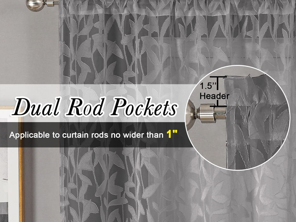 Sold as 2 Panels: Each pack contains 2 voile sheer curtains, each 38" wide and 96" long, total width is 76", total length is 97.5". The top 2" rod pocket makes curtains easier to hang or slide, suitable for curtain rods of most windows. 1.5" curtain header makes a nice decoration for your window. Unique Fabric: This jacquard sheer curtain is made of high twist yarn, which is stronger and more durable. This sheer curtain is certified by OEKO-Tex 100 to ensure that the curtain is safe and not easy to corrugate, which protecting the health of you and your family. Sheer Curtains: These voile sheer window curtains are minimalist and generous, vertical and not loose, which is a good decoration for windows and walls. These semi gauzy curtains can let sunlight and air into the house, meanwhile,protect your privacy. It is suitable for living room, kitchen, bathroom, dining room, cafe, nursery room, studio or wherever you use them. Hanging Methods: You could hang these sheer curtains from the 2" rod pocket with the 1.5" header. You could also use clip rings for easy, slide open and closed (clip rings are not included). Each hanging method is easy to use. Easy Care: This 96 Inches sheer curtain can be machine washable, gentle cycle in cold water. Ironed at low temperature if needed. Tumble dry at low temperature, and will last long.