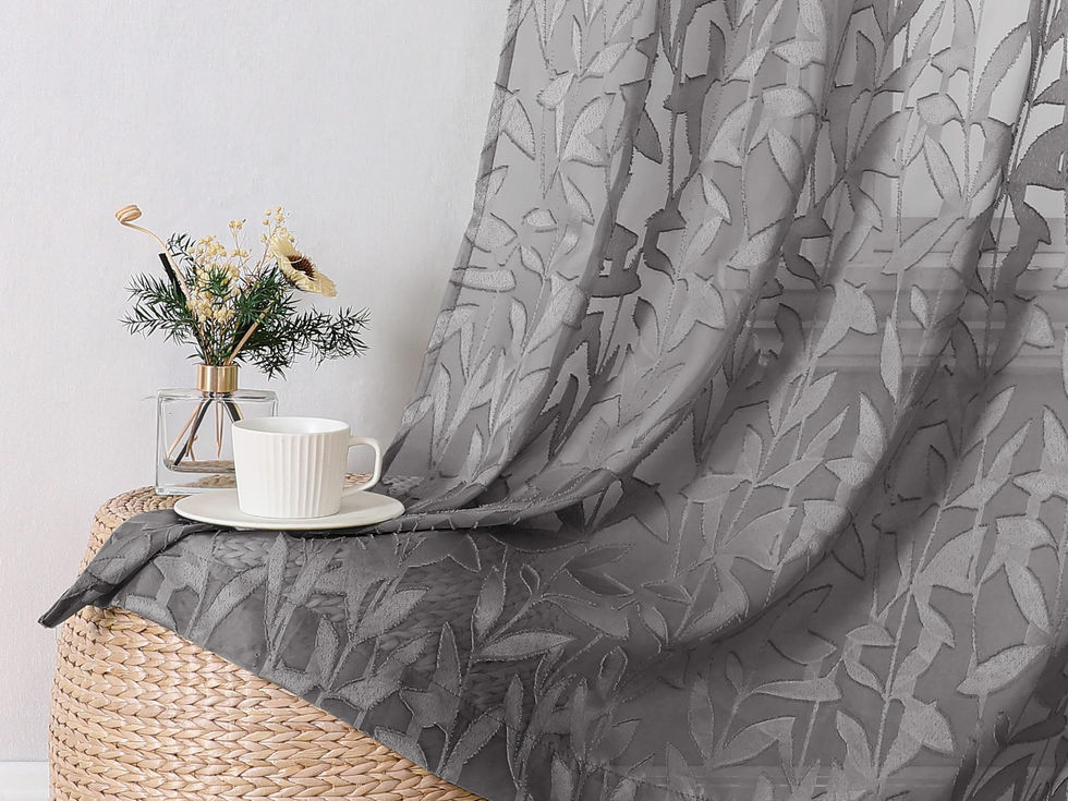Lecloud Leia Clip Textured Leaf Charcoal Grey Sheer Curtains 96