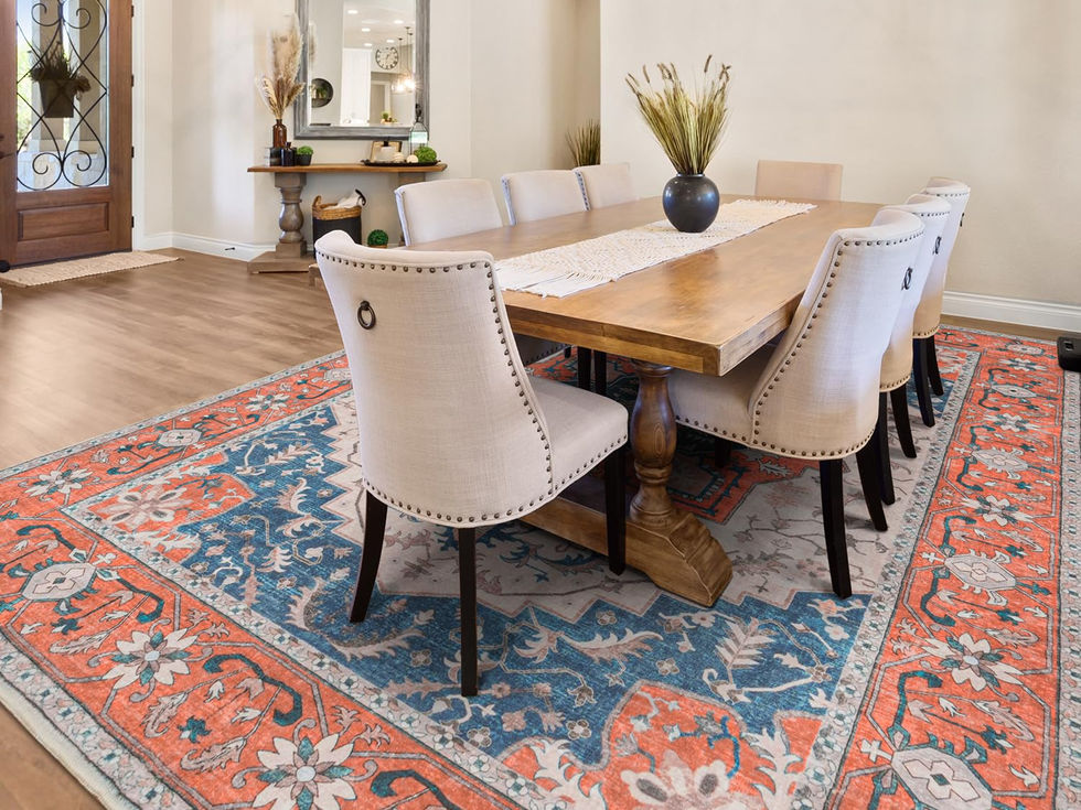 Vintage Area Rug: This exquisite 5x7 area rug features a central floral medallion and ornate border, bringing a touch of classic elegance to your home. With its contrasting orange, blue, brown and beige colour scheme, the area rugs 5x7 add a touch of warmth and luxury to any space, whether your living room, bedroom, dining area, kitchen or home office Ultra-Soft & Non-Slip: The surface of the boho area rug is made from super-soft faux wool, making it feel like walking on clouds—warm and comfortable underfoot. The backing features non-slip rubber (TPR) that securely grips the floor, ensuring the area rugs stay in place when walked or run on. This offers peace of mind, especially for households with elderly members, children, or pets Machine Washable Area Rug: This thick area rug is stain-resistant and water-repellent, making it easy to maintain. Spills will only remain on the surface, allowing for quick and easy cleanup with a simple wipe of a cloth. For routine care, a vacuum or broom suffices. When it needs a deeper clean, machine wash the rug on a gentle, cold cycle, following the size-specific instructions. Do not use heat or bleach Low Pile Area Rug: Lessymo living room area rugs can be easily placed at entryways or under furniture without getting stuck under doors, perfect for high-traffic areas. The 0.16" pile height prevents pet hair from getting trapped, while also ensuring your pet's paws won’t get caught in the fibers or scratch the floor Easy to Store & Maintain: The area rug folds or rolls up effortlessly for storage. If you notice any wrinkles or creases, simply lay the rug flat, and the wrinkles or edges will smooth out within a few days. You can also flip the red area rug over and place a heavy object on it to flatten it, or use a low-heat iron to smooth the christmas area rug more quickly (below 300℉)