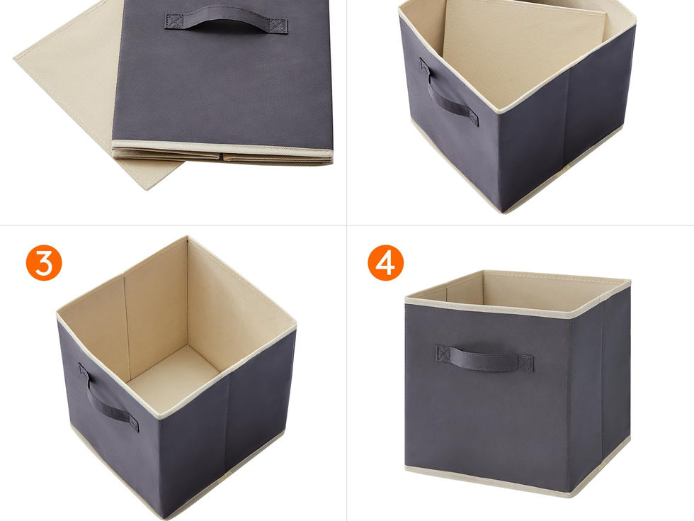 Multipurpose: These 11 inch cube storage bins can be placed in the living room or bedroom to store sundries, magazines and more. Neutrally designed to adapt with your decor, this is a great addition to save space and stay organized. Practical Design: With its simple foldable design, the fabric storage cubes stand firm and upright when used and can be collapsed and stored away instantly when not in use. We suggest using these bins with square cabinets. Complementary Decor: With a choice of 2 neutral hues of grey and black, these cube organizer bins perfectly blend into your living space without any effort. Quality Construction: With high quality non-woven fabric and cardboard insert that has been precision stitched, these fabric storage bins are firm and good for prolonged use. All materials are bio-degradable and safe Package Includes: 10.5"L x 10.5"W x 11"H (18L) comes in 12 pack. You can rest assured that these foldable storage cubes will fit into most closet sizes.