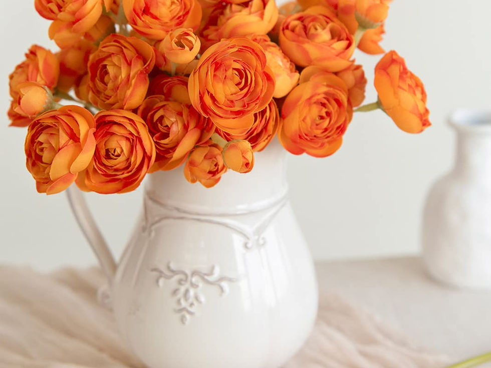 Perfect for Weddings: The ranunculus flowers are approx 1.2 inches wide, and 11 inches long from the top of the flower to the end of the stem. They make the ideal choice as filler flowers for bouquets, table centerpieces, etc. Package Details: The package includes 18 pieces of mini ranunculus flowers with stems. each piece has four flowers, two blooming flowers, and two flower buds. High-Quality Material: These ranunculus are made of high-quality silk. The stems are made of iron wire wrapped with green floral tape, which is extremely flexible and easy to cut. Easy to DIY Arrangments: These ranunculus flowers are suitable as supplementary flowers for bouquets to look fuller, and also work wonderfully just by themselves in the vase. Long-term Storage: These artificial flowers are perfect for adding a bit of nature and all its beauty to your home, wedding and many other occasions without the hassle and maintenance like fresh plants.