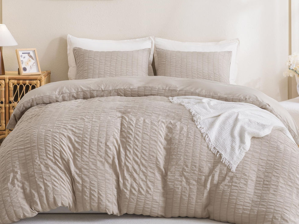 Elegant Home Decor: This queen comforter set combines the exquisite seersucker craft with a stripe pattern, bringing a touch of sophisticated style to any sleeping space. Give the gift of elegant coziness to your loved ones, whether it’s for Mother’s Day, Women's Day, Christmas, or just to show you care. Butter Soft Fabric:Premium microfiber bedding set gives you a butter-soft feel and offers exceptional durability as well as superior breathability and softness for your all year coziness. Cloud-like Comfort: Whole-piece polyester fill with even invisible stitch makes the bed blanket set fluffy and cozy, the lightweight bedding set will envelop you in softness to provide you with a cloud-like sleeping experience. Easy Care: The bedding comforter set is easy to care which can save you more time and energy. For year round softness and prevent pilling up, it's highly recommend to wash it in the gentle cycle with cold water, sun-dry or tumble dry in low when needed. What's included: Queen size comforter set includes 1 comforter (90x90 inches), 2 pillowcases (20x26 inches). Since the comforter comes in vacuum-sealed packaging, it is highly recommended to wash it and tumble dry low temperature to puff the comforter before first use. Or you can expose it to sunlight and tap gently, then it will re-fluffed nicely after hours.