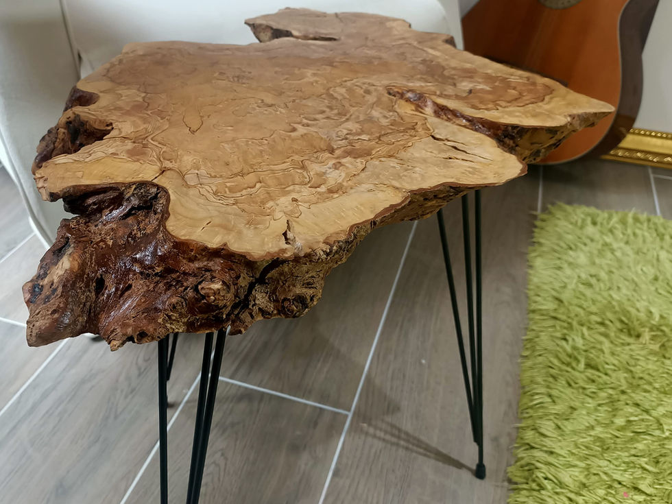 Live Edge Coffee Table End Table from Olive Root with 3 Legs Unique