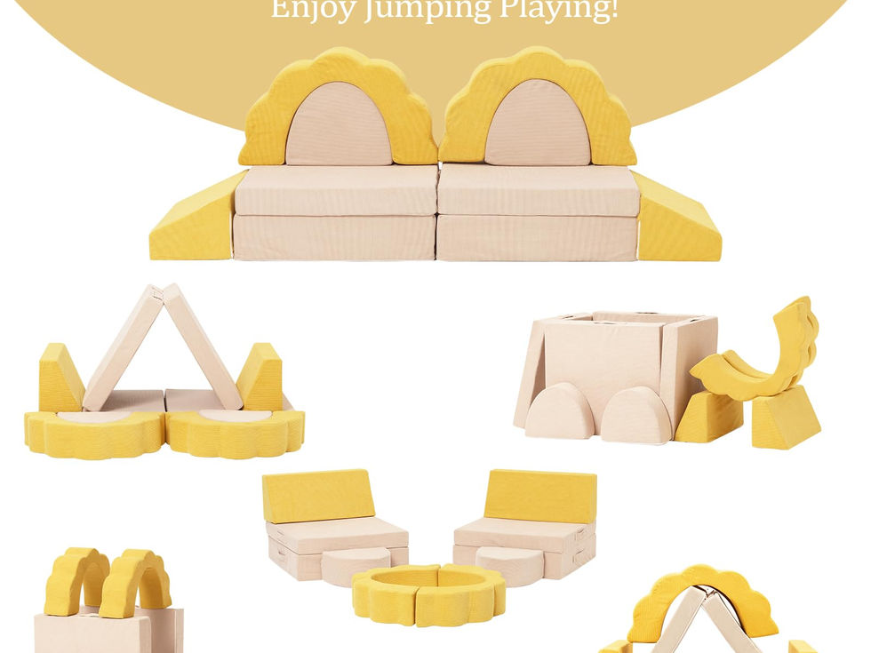10 Piece Convertible Kids Couch: This kids sofa features 10 piece, including 4 foldable seats, 2 back cushions and 4 flower-shaped cushions. Enjoy this kids couch sofa converting different functions. These 10 piece foam couch can not only be a comfortable sofa, but also be a playhouse, tunnel, castle, bed, tent, car or anything that children can imagine. Suitable for kids to play, climb, chat, relax or watch TV. Arrives are already assembled and ready to use. Imaginative Furniture for Kids and Adults: This toddler couch is a decorative modular sofa for bedroom, playroom, nursery, kids room and so on. The whole family can spend good time together and be entertained with our kids play couch. This modular play couch is a great playroom addition for playing and inspiring. It can stimulate children's imagination, creativity and social skills, make children more active and optimistic. Easy to Clean/Setup: This sofa for kids is made of high density foam. And the soft slipcover has zippers that makes it easy to remove and machine wash. Couch compressed in a box. When the package is opened, this foam play couch will be deformed and thin due to compression packaging. Don't worry, once unboxed the climb and crawl playset, you just need to let it sit for a while to restore it. Quality Assurance: This toddler sofa is comfortable and durable. High elastic and sturdy foam can withstand adventurous play activities. The sofa's foam core stands up to years of play, providing a soft, low-impact surface for kids to jump, climb and fall on, with no harmful hard edges or sharp corners for them to bump into! It is resistant to shrinking, fading and shedding. If your baby is learning to walk or climb, this kids foam couch will give you peace of mind. A Practical and Wonderful Gift: Kids can create different forms, shapes or hideouts for endless adventures they want to experience, and they can be stacked as and stored easily after play. Parents will get more chance to accompany kids to enjoy their little world! Perfect for birthday gifts, Christmas gifts and baby shower gifts.