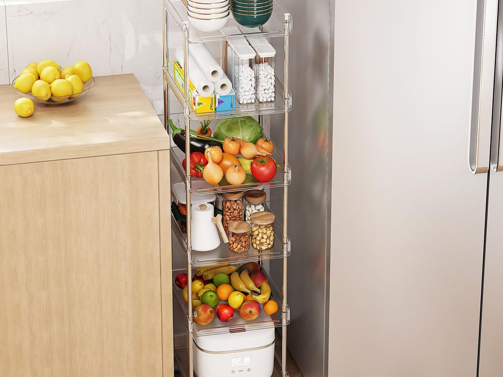 【Space-Saving Design for Tight Corners】Maximize your storage without sacrificing space! This slim rolling cart measures just 11.8" x 11.8" x 48.6", making it perfect for tight spaces like bathrooms, kitchens, laundry rooms, and offices. Its narrow profile fits seamlessly between appliances, corners, or small gaps, offering 6 tiers of versatile storage for toiletries, kitchen supplies, office essentials, and more. 【DIY Adjustable Shelves for Custom Storage】Customize your storage with ease! This LUCKNOCK storage cart allows you to assemble it into different configurations—use it as a 6-tier unit, or split it into multiple smaller units (e.g., two 3-tier or three 2-tier carts). Perfect for organizing countertops, cabinets, or any space that needs a clutter-free solution. 【Smooth Mobility & Sturdy Stability】Move your storage wherever you need it! Equipped with 4 smooth-rolling caster wheels (all with brakes), this cart glides effortlessly across floors while staying firmly in place when locked. Whether you're reorganizing your bathroom, kitchen, or office, this mobile shelving unit makes storage flexible and convenient. 【Crystal Clear & Minimalist Design】Elevate your space with a sleek, modern look! Made from high-quality PET material and reinforced stainless steel pipes, this cart combines durability with a crystal-clear aesthetic. Each shelf can hold up to 20 lbs, making it ideal for displaying decor, storing toiletries, or organizing kitchen essentials while blending seamlessly with any home decor. 【Quick & Tool-Free Assembly】No tools, no hassle—just effortless setup! Simply insert the steel pipes into the trays, and your storage cart is ready in minutes. Lightweight yet sturdy, this cart is perfect for busy households, offices, or anyone looking for a practical, space-saving storage solution. Plus, its open-sided design allows easy access to items from any angle.