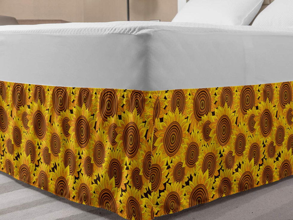 Lunarable Sunflower Bedskirt, Flowers Garden Meadow Idyllic Harvest