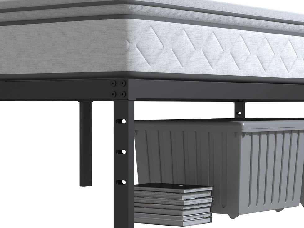 Multi-Angle Bracing: Maenizi bed frame is supported by 9 legs, stable and not shaking, evenly stressed and reasonably share the weight of the bed, to avoid the mattress sinking, durable and breathable. No Box Spring Required: Queen bed frame simplifies the purchase process without having to match a box spring, save your time. Enjoy zero noise and non-shake comfort experience with queen size bed frame. Under Bed Storage: Metal bed frame queen with simple design is fashionable and powerful, and convenient to storage items, avoiding sundries accumulation in the corridor, make your room more spacious. Easy Assembly: Intelligent integrated structure, the instructions specify the bed frames assembly process, save worry and effort. The firm package contains all required accessories and tools. Headboard and Footboard Compatible: Queen platform bed frame legs reserved 3 holes to connect the headboard or footboard for you to create a personalized exclusive style. Bed frames queen dimension:79.6 x 59.6 x 12 inches.